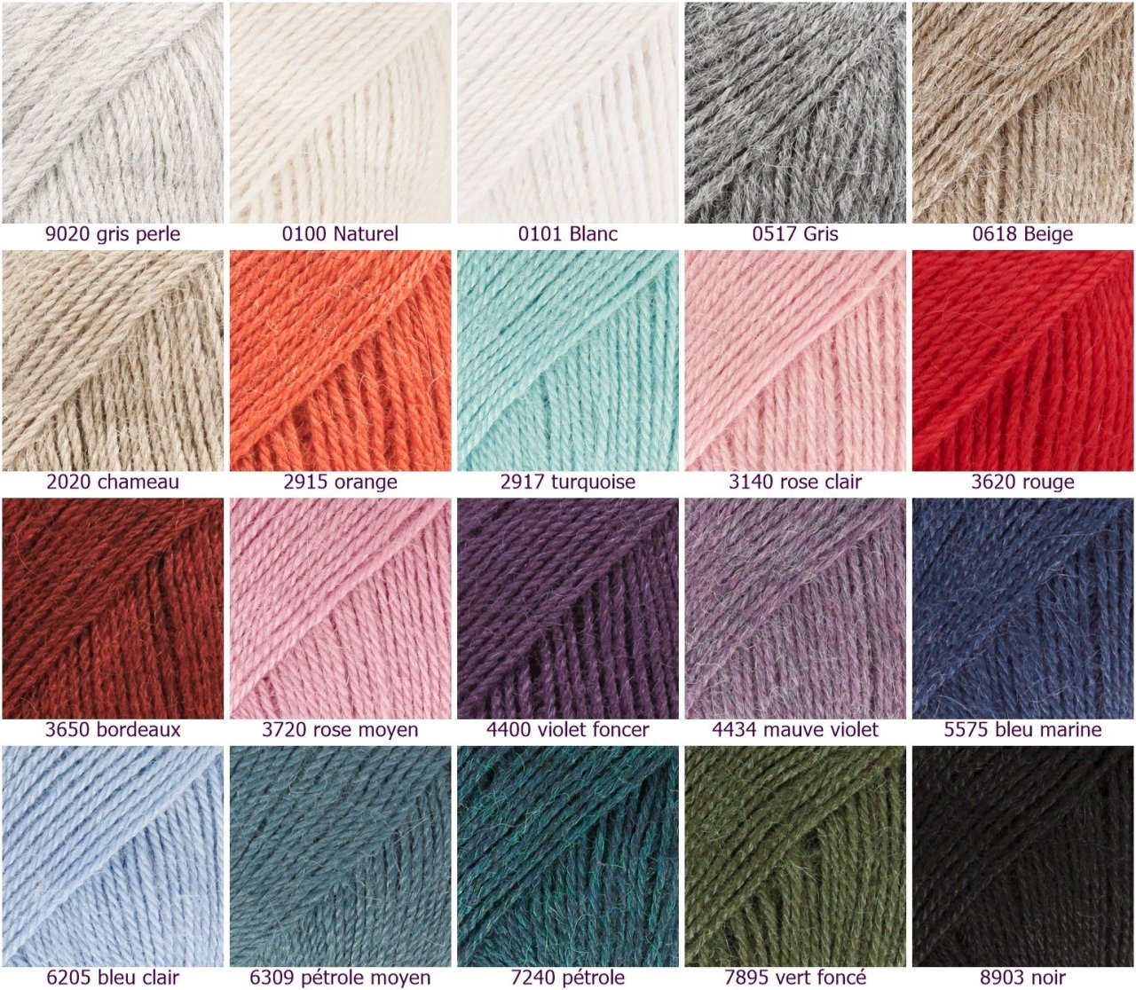 - 0100 Naturel, 0101 Blanc, 0501 Gris clair, 0506 Gris foncé