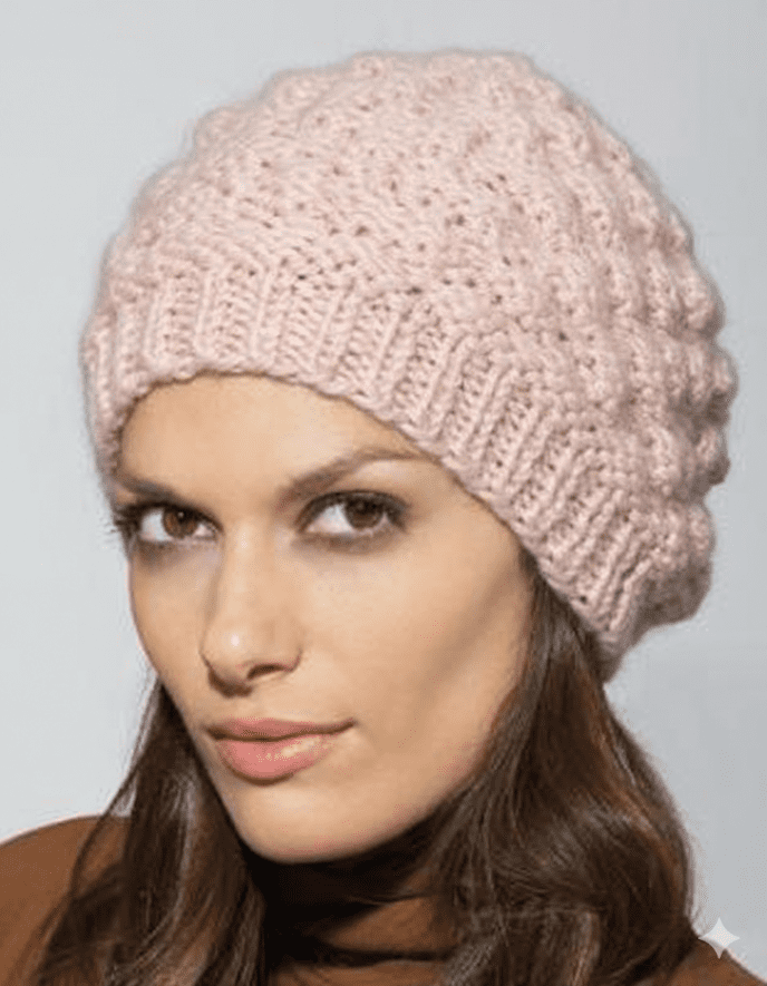 Bonnet femme tricoter à la main en laine et alpaga " Catie "