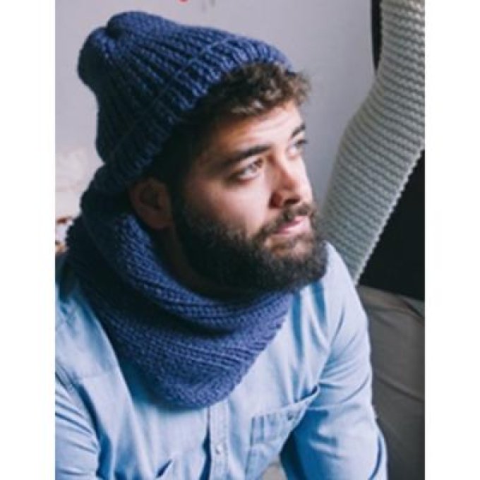 Joli bonnet pour homme tricoté à la main avec son revers en laine vierge et acrylique, une laine qui passe sans soucis en machine et aux sèche-linge.