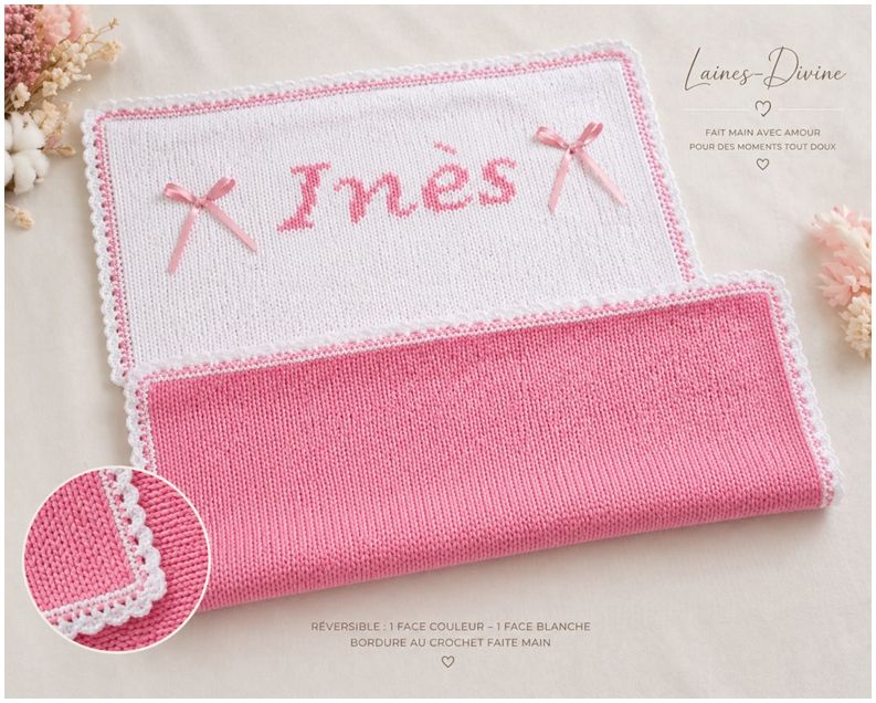 🌟 Couverture Bébé Réversible & Personnalisée – Le Luxe du Fait Main