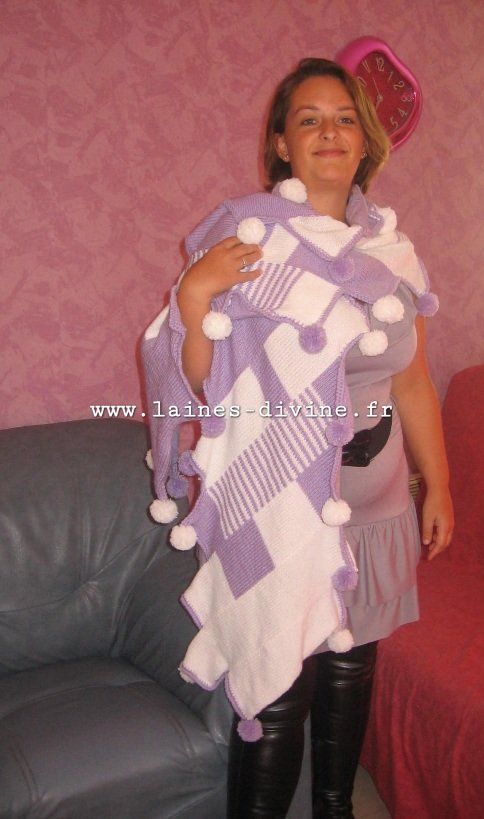 Écharpe femme en laine avec ses pompons