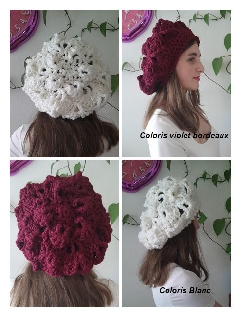 Gros béret femme en laine et alpaga crocheté à la main, ce gros béret présente des motifs en forme de coquilles qui lui confèrent une allure unique et tendance.