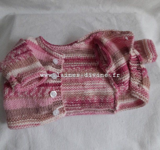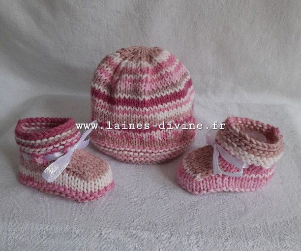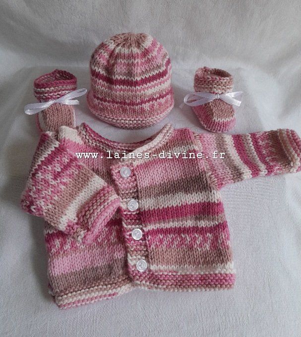 Composé d'une brassière élégante avec ses quatre boutons cousus sur le devant, d'un adorable bonnet et de chaussons coloris rosé beige disponible